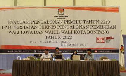 Komisi Pemilihan Umum (KPU) Kota Bontang gelar Evaluasi Pencalonan Pemilu Tahun 2019 dan Persiapan Teknis Pencalonan Perseorangan Pemilihan Wali Kota dan Wakil Wali Kota Bontang Tahun 2020. Dalam evaluasi yang dilaksanakan di Hotel Grand Mutiara (ex Oak Tree), Rabu (16/10/2019) , dihadiri oleh Asisten Pemerintahan Setda Kota Bontang, KPU Provinsi Kaltim, Polres, Partai Politik, Tokoh masyarakat, Tokoh agama, Organisasi Masyarakat, beberapa OPD, camat dan Lurah