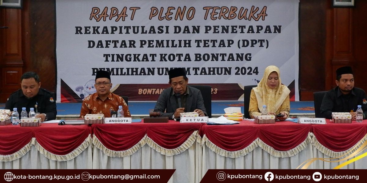RAPAT PLENO TERBUKA REKAPITULASI DAN PENETAPAN DAFTAR PEMILIH TETAP (DPT) TINGKAT KOTA BONTANG PEMILIHAN UMUM TAHUN 2024