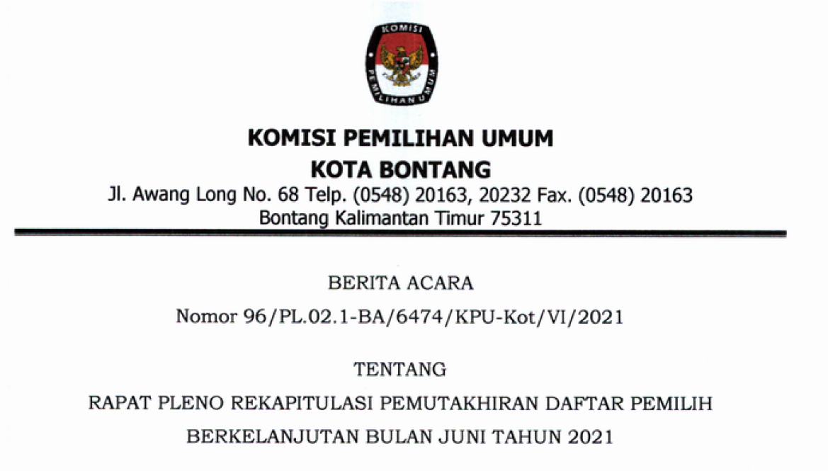 Rekapitulasi Pemutakhiran Daftar Pemilih Berkelanjutan Bulan Juni Tahun 2021 Jumat, 25 Juni 2021 00:00 353 Download PDF Bagikan: Telah dilihat 353 kali