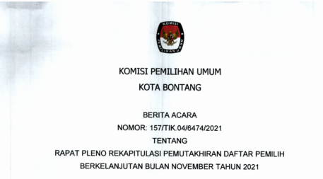 Rekapitulasi Pemutakhiran Daftar Pemilih Berkelanjutan Bulan November Tahun 2021 Jumat, 26 November 2021 00:00 372 Download PDF Bagikan: Telah dilihat 372 kali