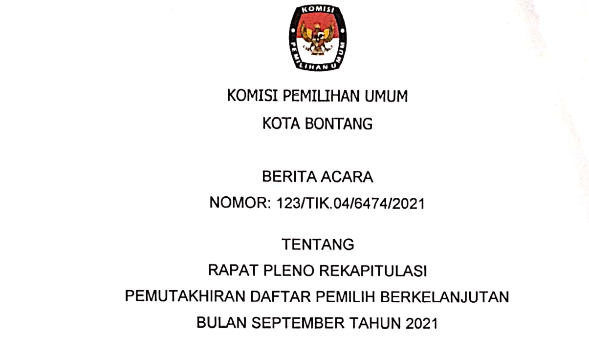 Rekapitulasi Pemutakhiran Daftar Pemilih Berkelanjutan Bulan September Tahun 2021 Jumat, 24 September 2021 00:00 357 Download PDF Bagikan: Telah dilihat 357 kali