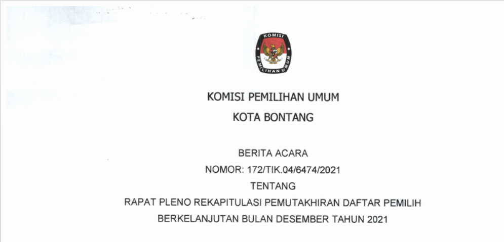 Rekapitulasi Pemutakhiran Daftar Pemilih Berkelanjutan Periode Desember Tahun 2021 Jumat, 24 Desember 2021 00:00 377 Download PDF Bagikan: Telah dilihat 377 kali