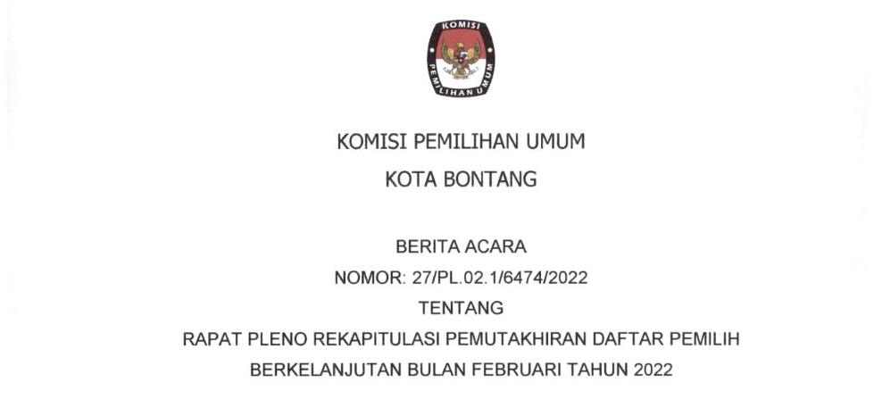 Download Berita Acara Pemutakhiran Data Pemilih Berkelanjutan Periode Februari tahun 2022