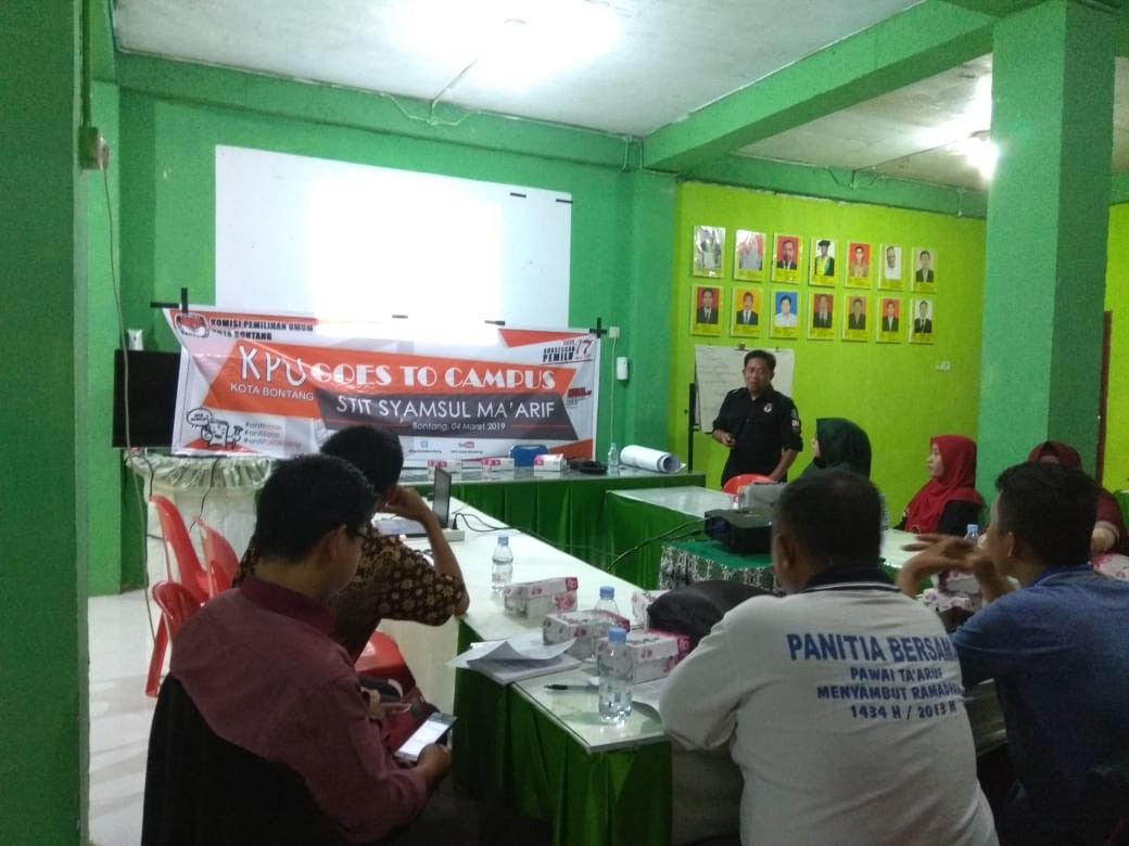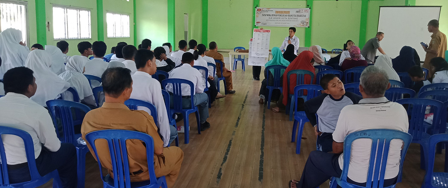 (5/4/2019) untuk wujudkan angka partisipasi masyarakat 77,5 % , KPU Kota Bontang sosialisasikan pemilu 2019 pada SLB Negeri Bontang dengan Pemilih disabilitas dan orang tua disabilitas, kegiatan yang berlangsung di Aula SLB Bontang tersebut dimulai pukul 09.00 Wita, narasumber pada kegiatan tersebut, Komisioner KPU Kota Bontang, Saparuddin, menjelaskan jenis dan jumlah surat suara yang di dipakai di TPS serta ukuran surat suara untuk presiden dan wakil presiden (22x31cm), Anggota DPD (58x42cm), Anggota DPR RI (51x82cm), Anggota DPRD Provinsi (51x82cm), DPRD Kab/Kota (51x82cm), kegiatan berjalan dengan lancar dan diakhiri dengan sesi foto bersama