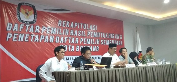 KPU Kota Bontang menggelar Rapat Pleno Terbuka Rekapitulasi Daftar Pemilih Hasil Pemutakhiran dan Penetapan Daftar Pemilih Sementara Kota Bontang Pada Pemilihan Umum Tahun 2019, Minggu (17/6/2018). Rapat yang bertempat di Hotel Oak Tree tersebut dimulai pada pukul 14.00 WITA dan dihadiri oleh Wakil Wali Kota, Disdukcapil, Panwaslu, Partai Politik, PPK dan PPS se-Kota Bontang. Rapat pleno dipimpin oleh Ketua KPU Kota Bontang, Suardi dan didampingi oleh Komisioner dan Sekretaris KPU Kota Bontang. Hasil rapat pleno menetapkan jumlah pemilih laki-laki 60.674 jiwa, jumlah pemilih perempuan 55.842 jiwa sehingga total keseluruhan pemilih berjumlah 116.516 jiwa. Rapat diakhiri dengan penyerahan Berita Acara ke perwakilan Partai Politik, Panwas, dan PPK.