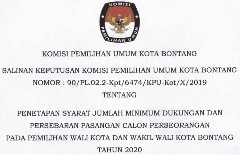 Suardi mengemukakan bahwa Bakal Pasangan Calon yang akan mendaftar menggunakan jalur Perseorangan harus melakukan pengumpulan dokumen dukungan Pasangan Calon berupa Surat Pernyataan Dukungan(Formulir Model B.1-KWK Perseorangan) dengan melampurkan Fotokopi Kartu Tanda Penduduk Elektronik sesuai surat edaran KPU Nomor 1917/PL.01.9-SD/06/KPU/IX/2019