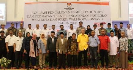 Komisi Pemilihan Umum (KPU) Kota Bontang gelar Evaluasi Pencalonan Pemilu Tahun 2019 dan Persiapan Teknis Pencalonan Perseorangan Pemilihan Wali Kota dan Wakil Wali Kota Bontang Tahun 2020. Dalam evaluasi yang dilaksanakan di Hotel Grand Mutiara (ex Oak Tree), Rabu (16/10/2019) , dihadiri oleh Asisten Pemerintahan Setda Kota Bontang, KPU Provinsi Kaltim, Polres, Partai Politik, Tokoh masyarakat, Tokoh agama, Organisasi Masyarakat, beberapa OPD, camat dan Lurah