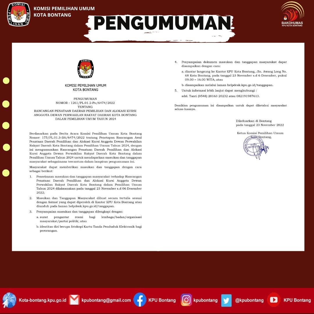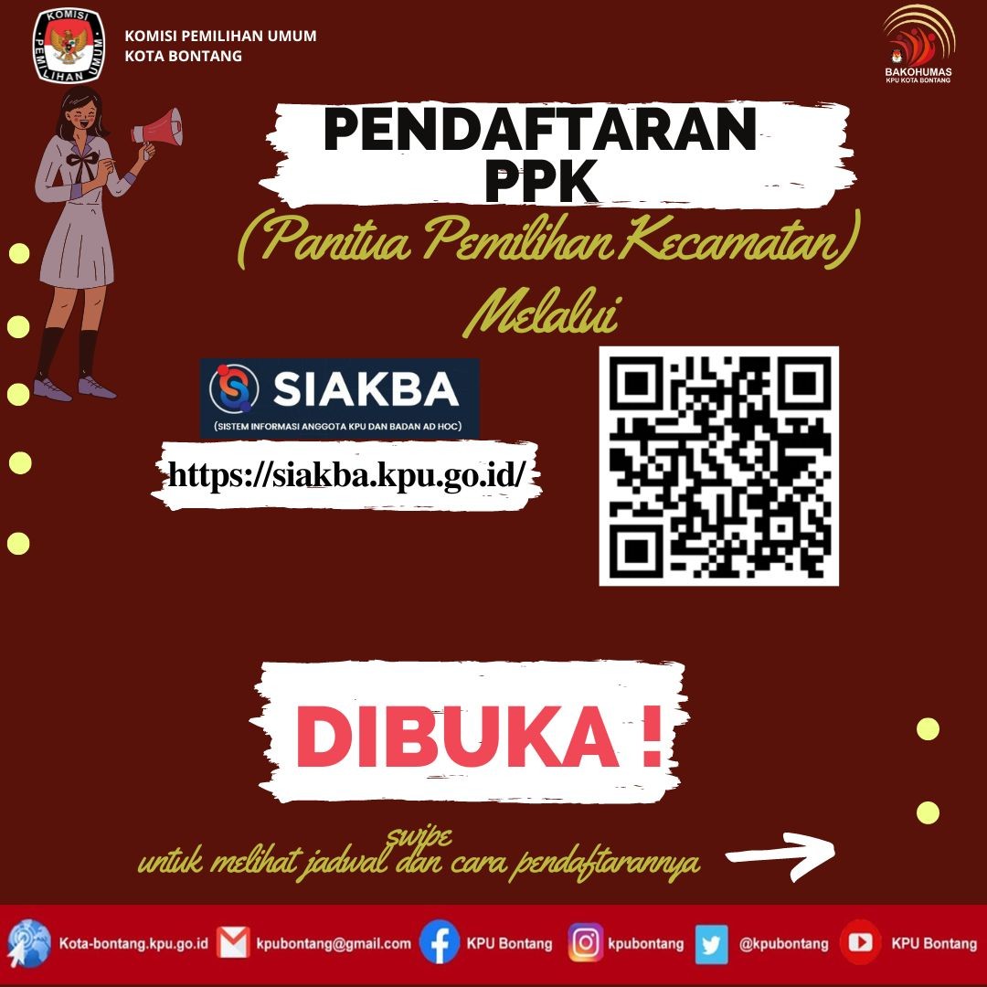 KPU Kota Bontang membuka seleksi calon anggota Panitia Pemilihan Kecamatan (PPK) untuk Pemilihan Umum Tahun 2024, Bagi teman Pemilih yang memenuhi kualifikasi silahkan mendaftarkan diri, Persyaratan dan kelengkapan dokumen serta batas waktu pendaftaran dapat dilihat di sini :