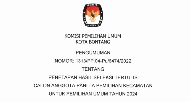 PENGUMUMAN SELEKSI CALON ANGGOTA PPK UNTUK PEMILIHAN UMUM TAHUN 2024